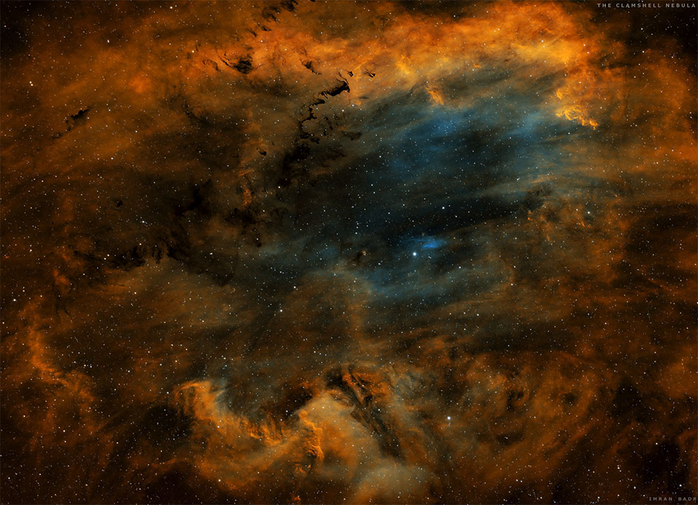 Popularly called the Tulip Nebula, the glowing cloud of interstellar gas and dust in Cygnus is catalogued as Sh2-101. It is about 8,000 light-years away and 70 light-years across. I started imaging this target towards the end of my M20 data acquisition marathon. I wanted to capture details of its core and the bow shock at 2350mm focal-length, so I opted for a 2-panel mosaic. With Bortle 7 skies, I needed a large integration across both panels at F/10 speed. In the end, I had to crop almost 50% of the top panel because signals were weak there and not contributing to the overall image. Maybe next year, I will collect more data for the top panel and also add more panels toward the right to complete the bow shock.