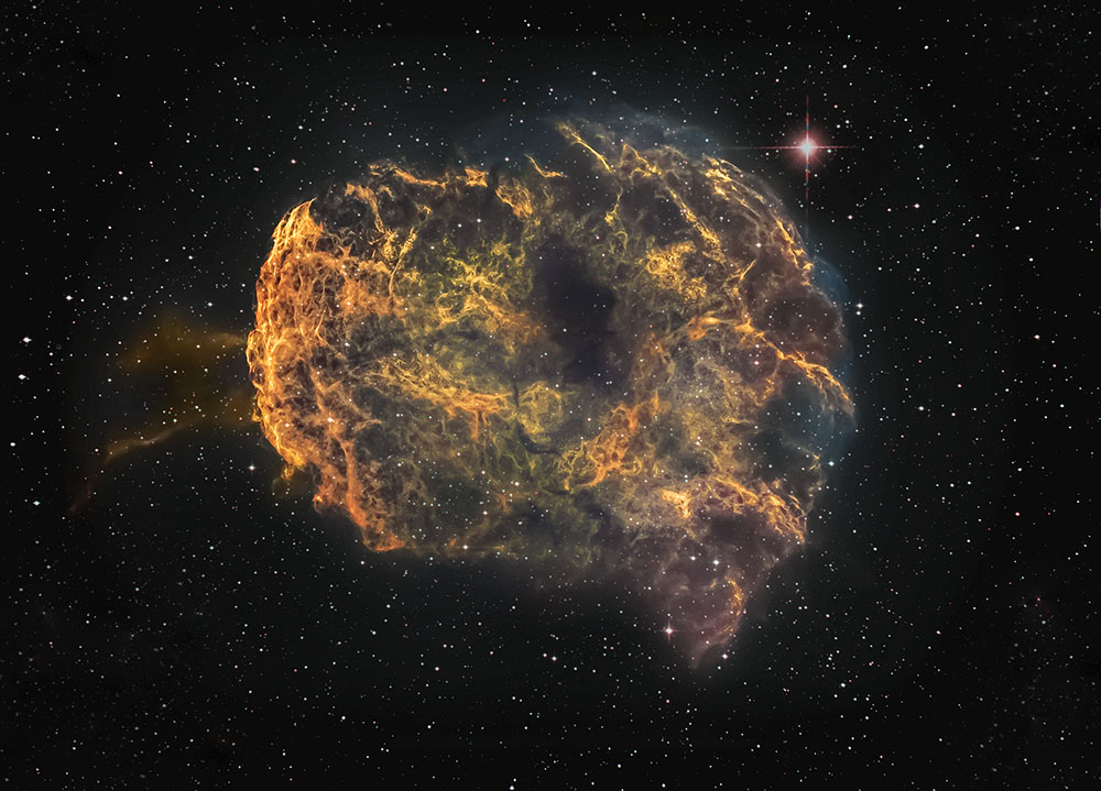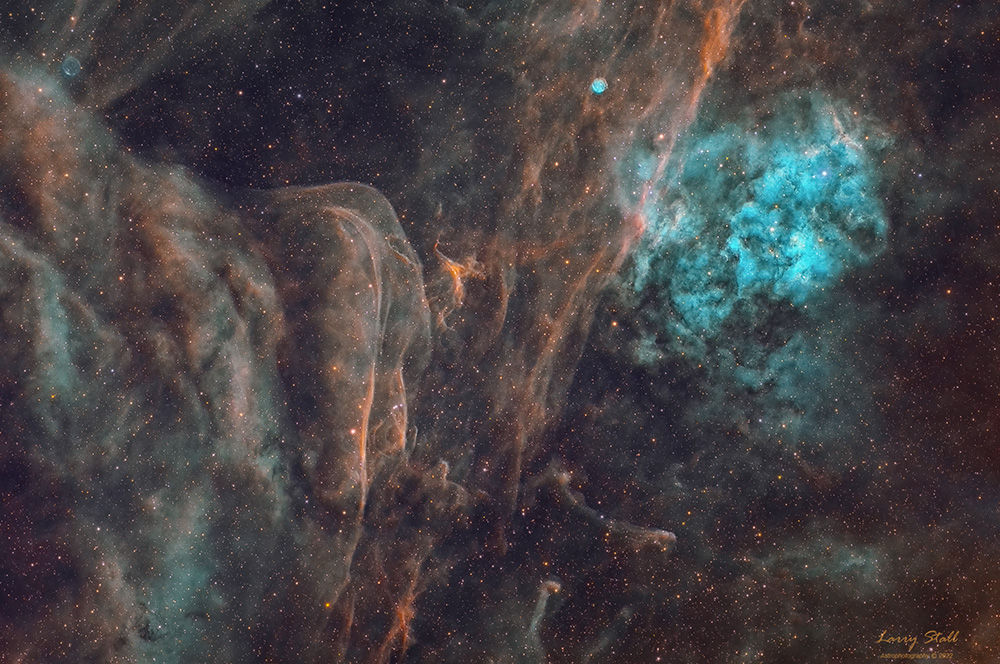 Captured Jun3 27-29, 2022. About 10 hours' integration consisting of 45x90" RGB, 67x180" Ha, 52x180" OIII, and 58x180" SII. Calibration, stacking, and processing done in PixInsight, final adjustments in Photoshop CC.