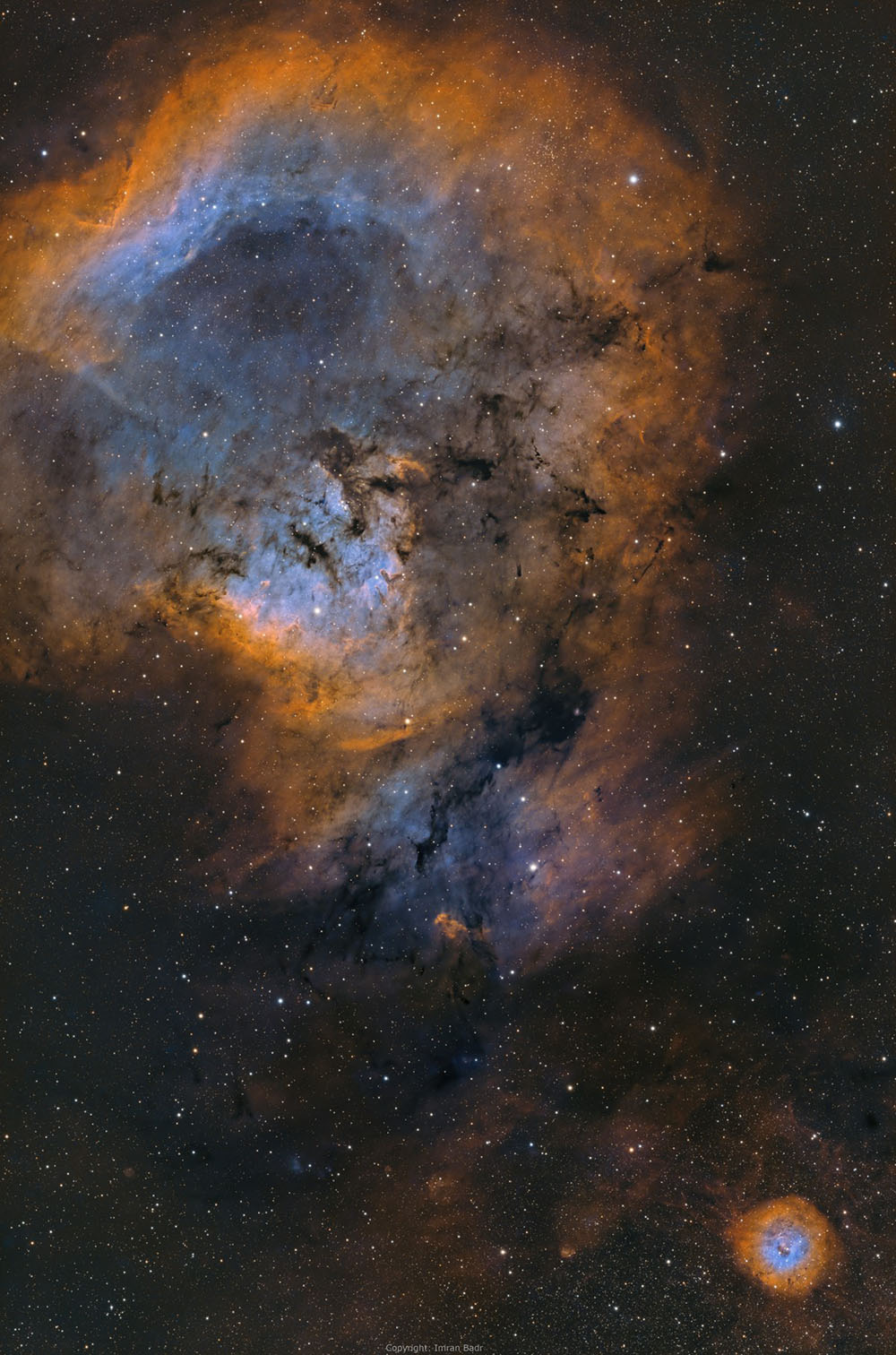 Towards the middle of the heart nebula, there is an open star cluster with stars nearly 50 times the mass of our sun. Radiation and heat from those massive stars have sculpted one of the favorite objects of the Astrophotographers. I fell in love with this object from the first 5-minute frame, so I continued to shoot S,H,O, R, G, B for a total of 60 hours. Captured all the data from my bortle 7 backyard in San Jose, CA during Nov 25 - Dec 8, 2023 using Celestron 9.25EdgeHD (f/10), Sky-Watcher EQ6Rpro, ZWO ASI2600MM Pro, Antlia 2.5nm S, H, O and V-Pro R,G,B filters.
