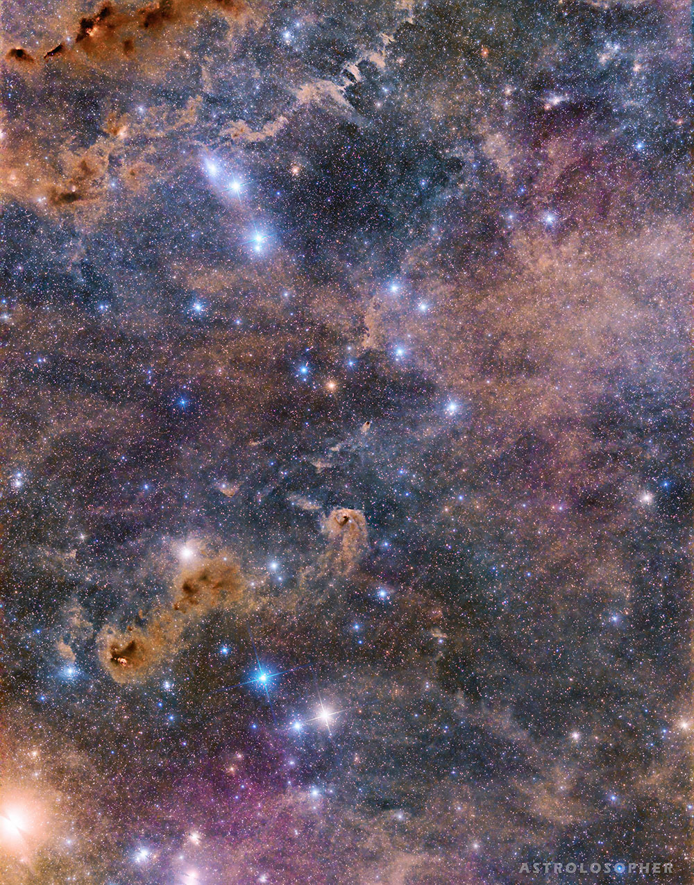 This image is the culmination of a month's work between Brian Puhl and Charles Hagen. Throughout the new moon we gathered just over 134 hours of data using three nearly identical scopes, one of which in the Southeast Arizona desert (Bortle 1) and the other two of which in Rural North Carolina (Bortle 4). Both of us have fallen in love with the Esprit 100ed for its sharpness and speed which made it perfect for such a delicate and faint target. Sharpless 224 was one of the first faint objects Charlie ever attempted to image, now nearly three years later he was ecstatic to have been able to get another attempt. This time around we decided to explore a bit and put some time into luminance from the SDSO Observatory in Bortle 1. To our surprise, we found that there is a striking amount of faint, rarely seen, IFN-like dust in the background, making the image all the more dynamic.