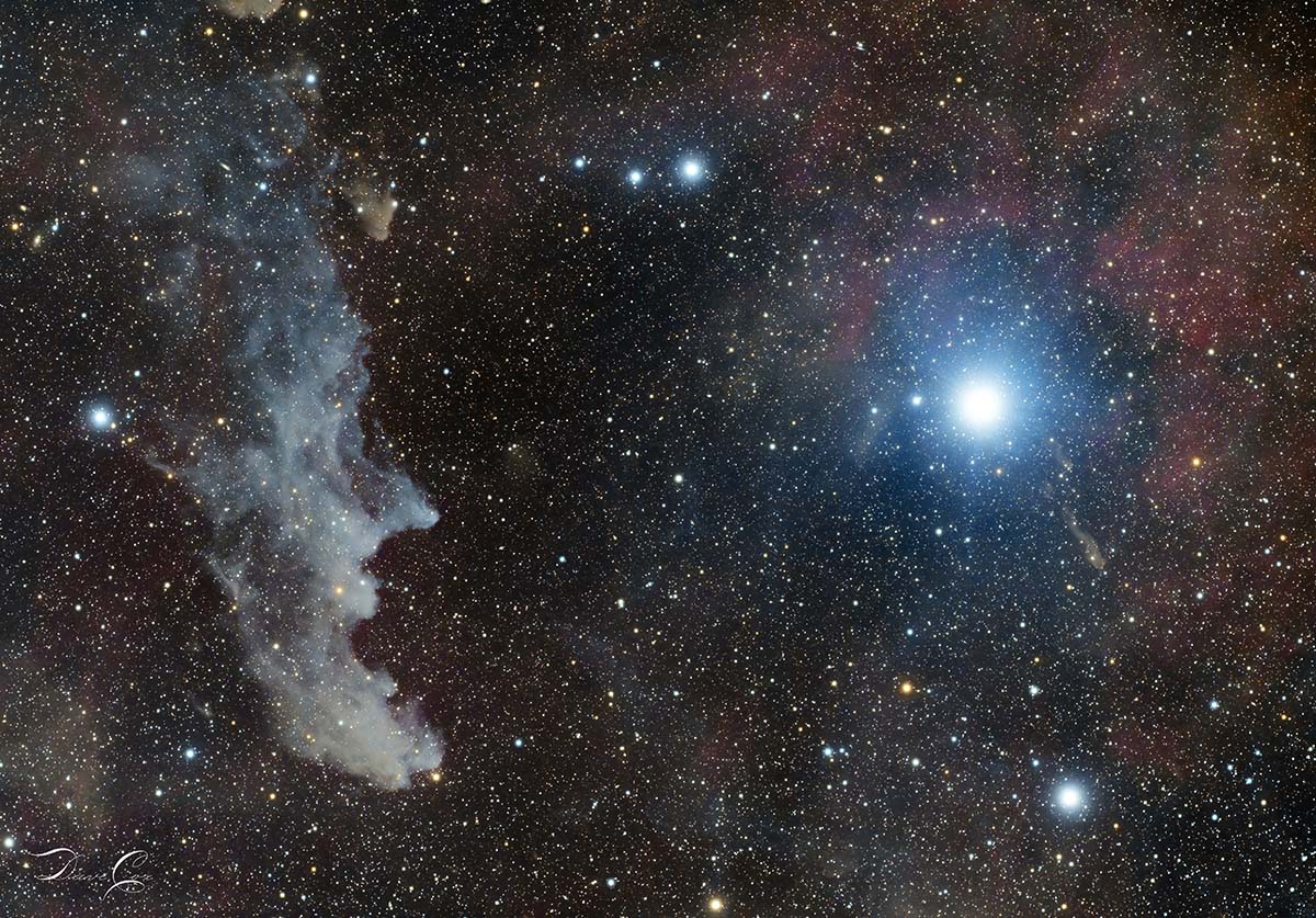 This months photo arrives from Ranger, Texas and makes out the intricate details in the Witch Head Nebula. David's process for capturing this beautiful photo follows.