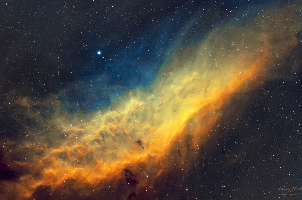 Larry Stall delivers spectacular color and composition in this month's photo of the California Nebula (NGC 1499). Here are the details.