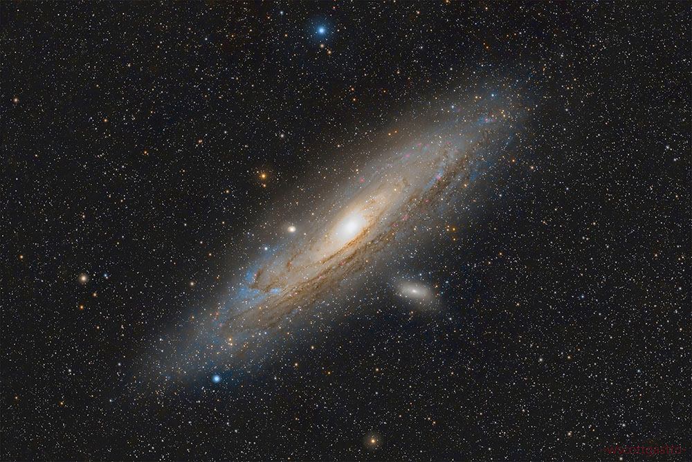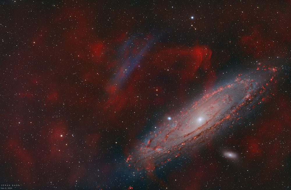 The SDSO1 discovery changed the way I looked at the Andromeda galaxy. I started Astrophotography in fall of 2022. Earlier this year, I decided to capture that arc by myself upon my two-year anniversary in this hobby by fall of 2024. I started capturing data in late summer of 2024. Nights were short and warm, but I continued to capture Ha and O3 on every clear night from my backyard in San Jose, CA. It was very challenging to capture that faint O3 arc. Ha was relatively easier. After around 40 hours of O3 integration, I started seeing some faint O3 nebulosity. I continued to capture data until the first week of Nov 2024 for a total integration on 223+ hours. I did processing in Pixinsight and Photoshop.
