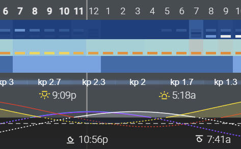 The Astronomical Clock provides at-a-glance understanding of the day / night cycle and celestial objects for your current forecast location. The clock updates in real time to keep you informed of the relative altitude of the planets and other deep space objects during a 24 hour cycle. The list of objects can be edited at any time to meet your observing and photographing priorities.